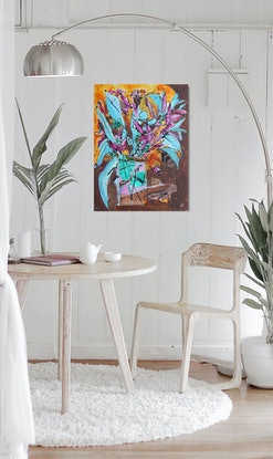 A contemporary painting of a simple still life. This artwork uses bold‚ quick‚ brushstrokes to create energy. Loosely executed with a limited palette.