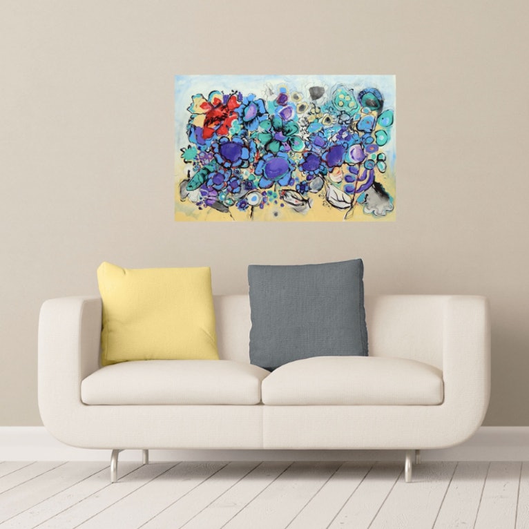 Mixed Media on stretched canvas. Sealed for protection. Signed on the front.