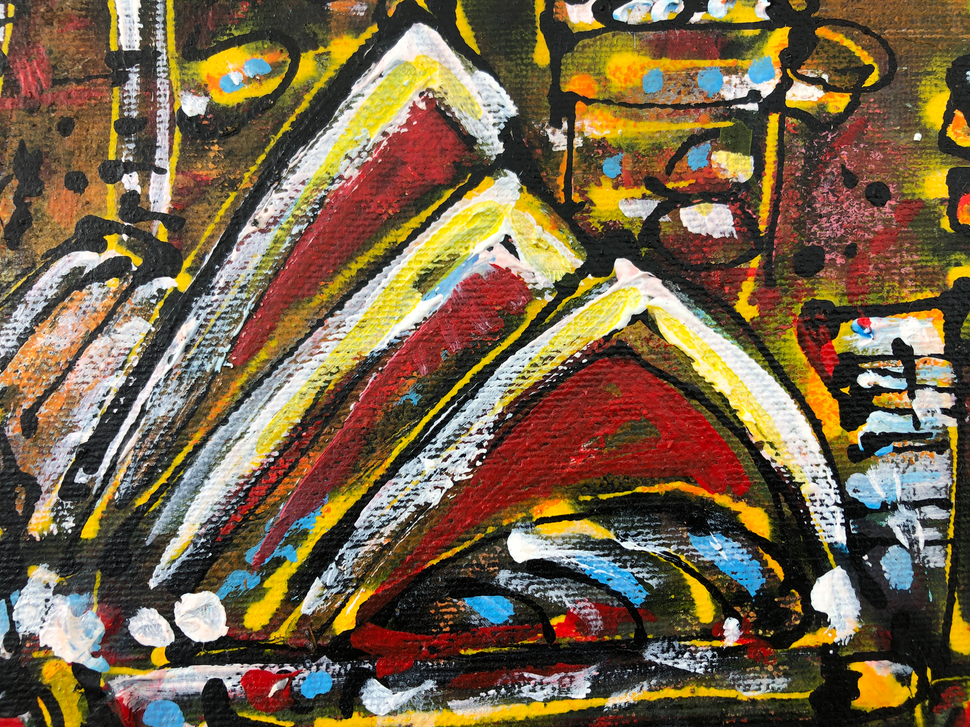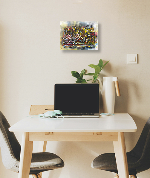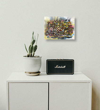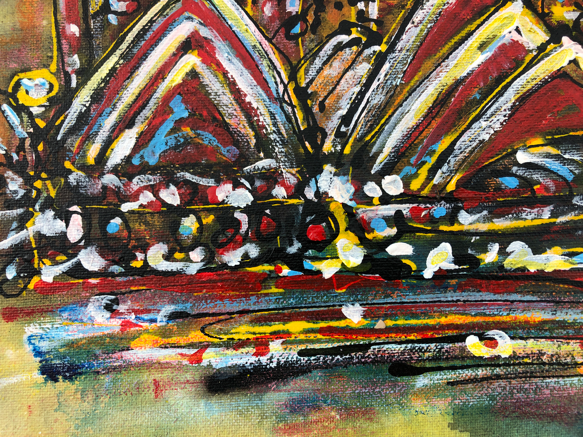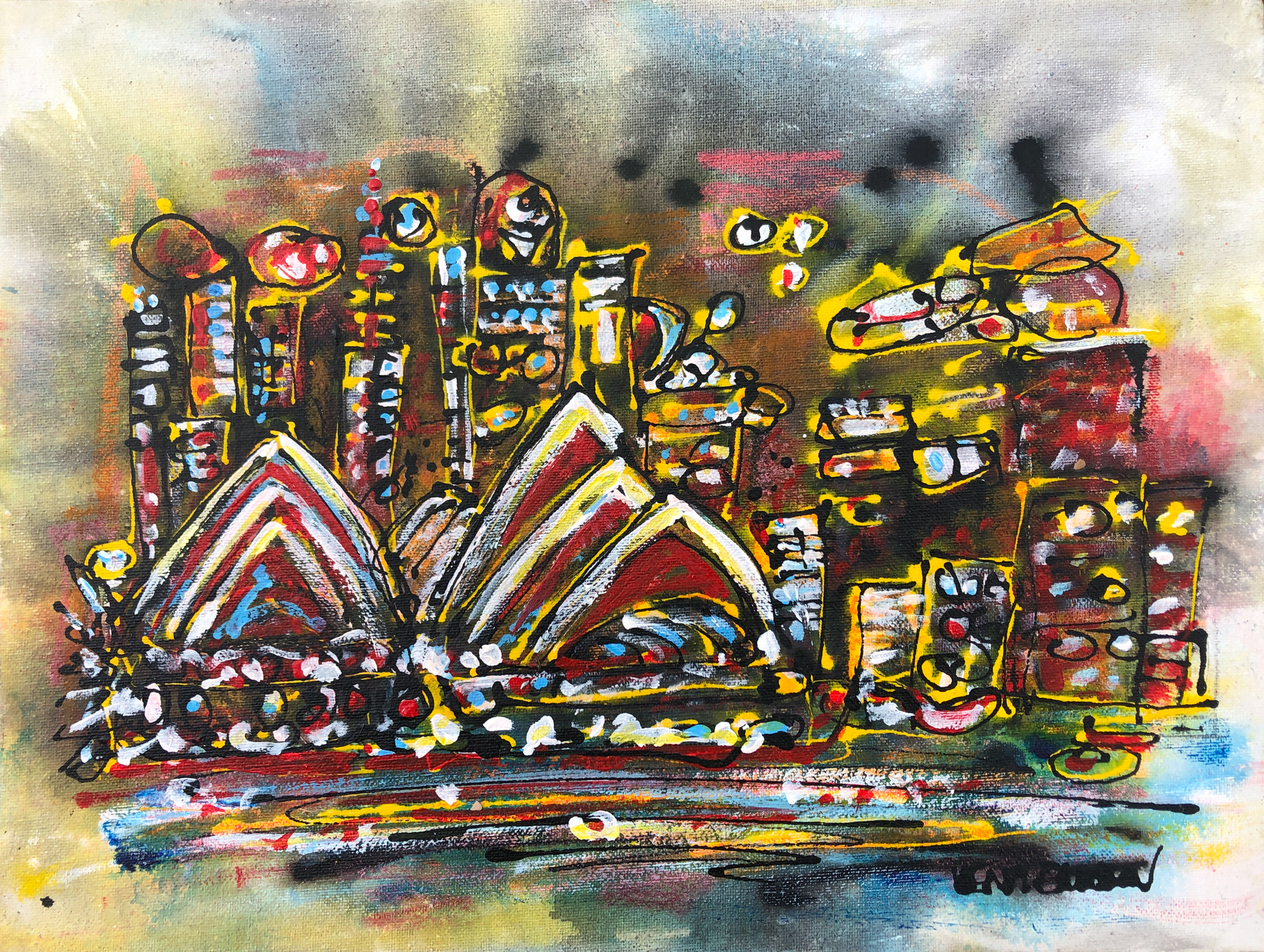 Sydney Opera Tonight is a multilayered painting of the Sydney Opera House at night.